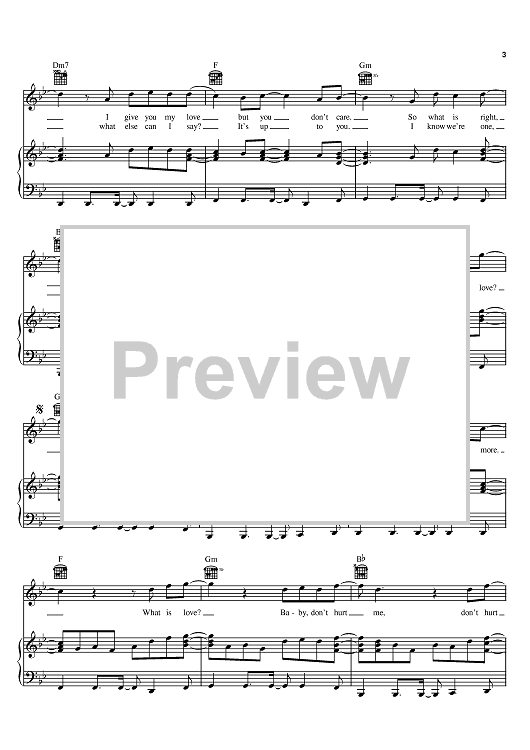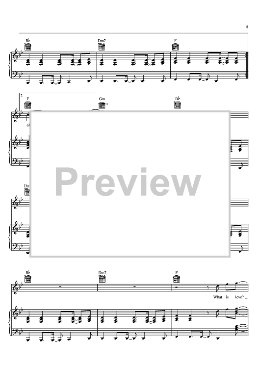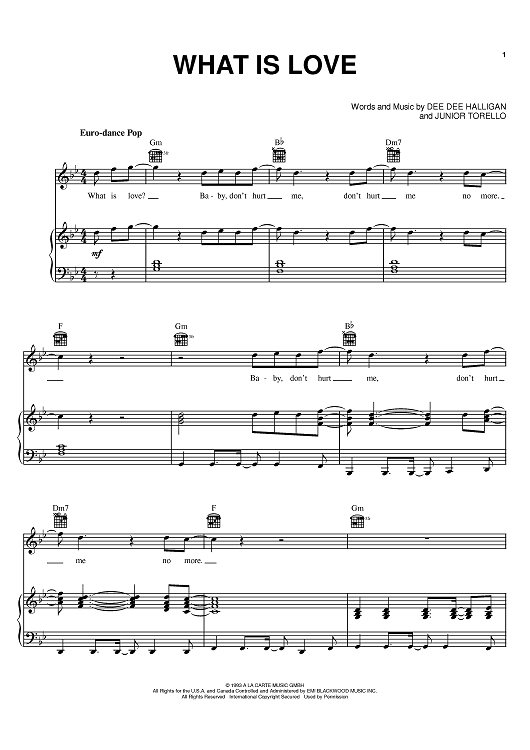 Digital Sheet Music for What Is Love by Haddaway, Dee Dee Halligan, Junior Torello scored for Piano/Vocal/Chords; id:398175