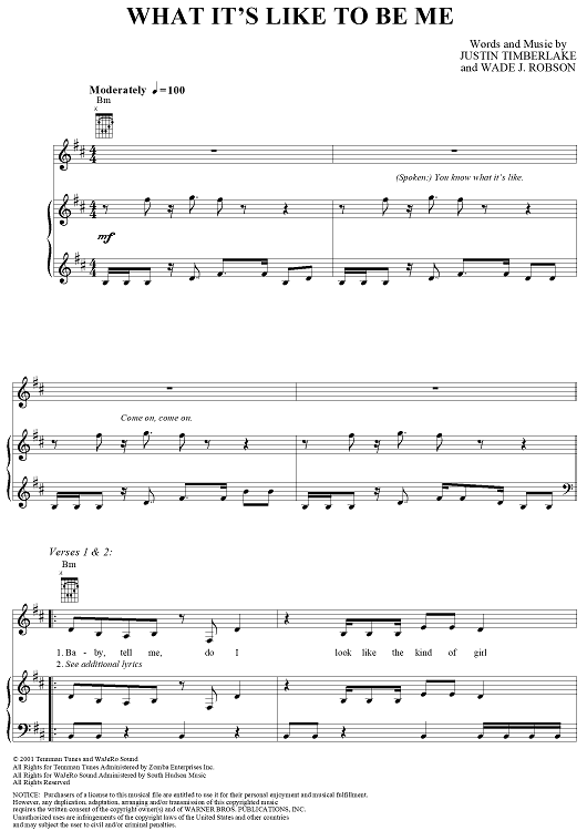 Digital Sheet Music for What It's Like to Be Me by Wade Robson, Britney Spears, Justin Timberlake scored for Piano/Vocal/Chords; id:286576