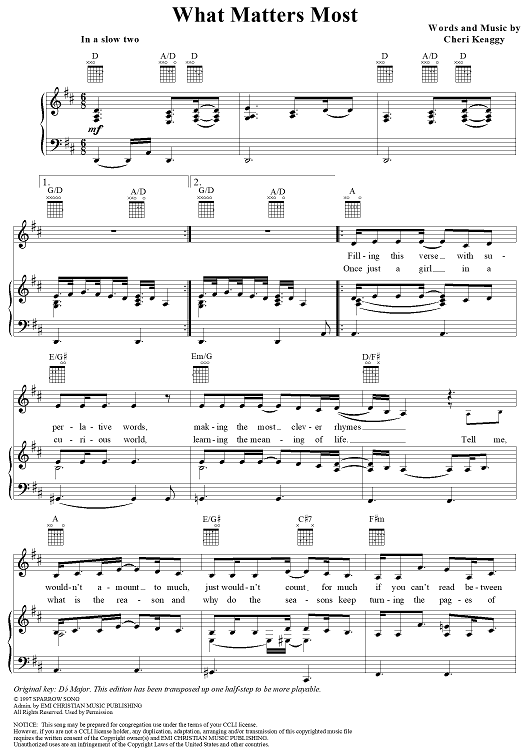 "What Matters Most" Sheet Music by Cheri Keaggy