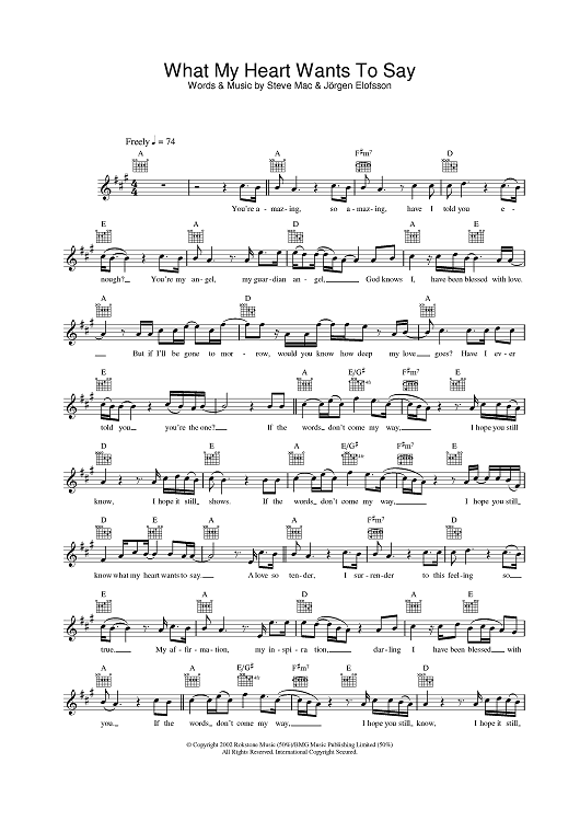 Digital Sheet Music for What My Heart Wants To Say by Jörgen Elofsson, Steve Mac, Gareth Gates scored for Lead Sheet; id:377736