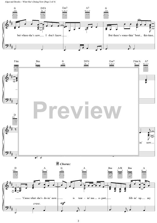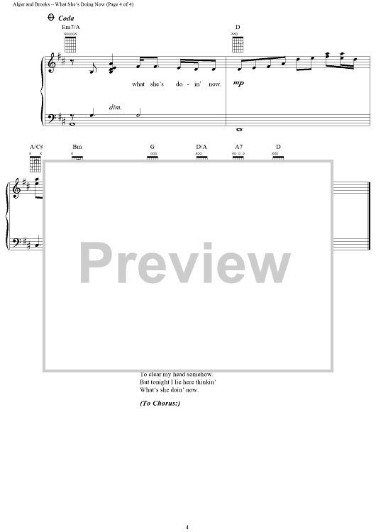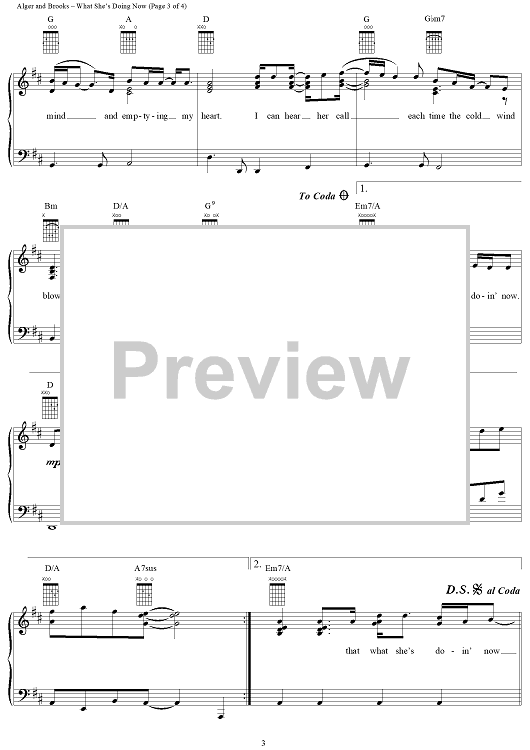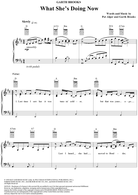 Digital Sheet Music for What She's Doing Now by Garth Brooks, Pat Alger scored for Piano/Vocal/Chords; id:109584