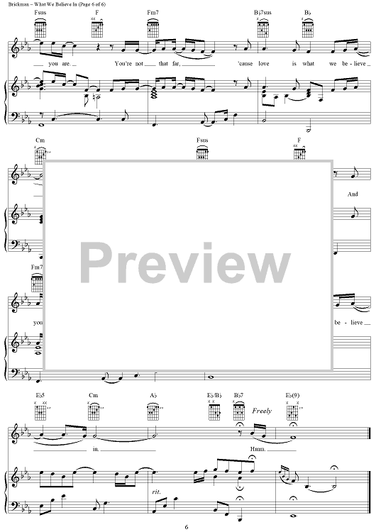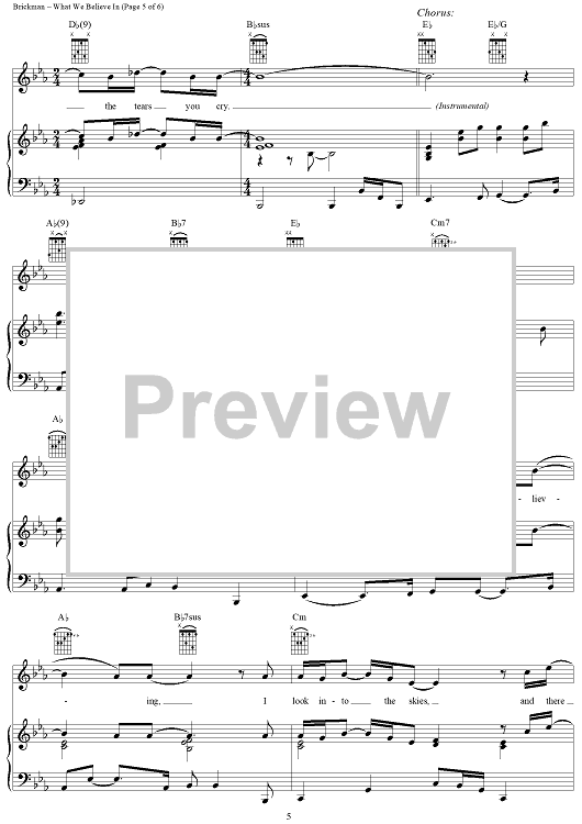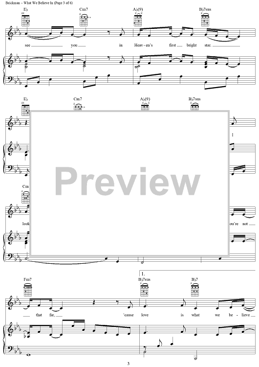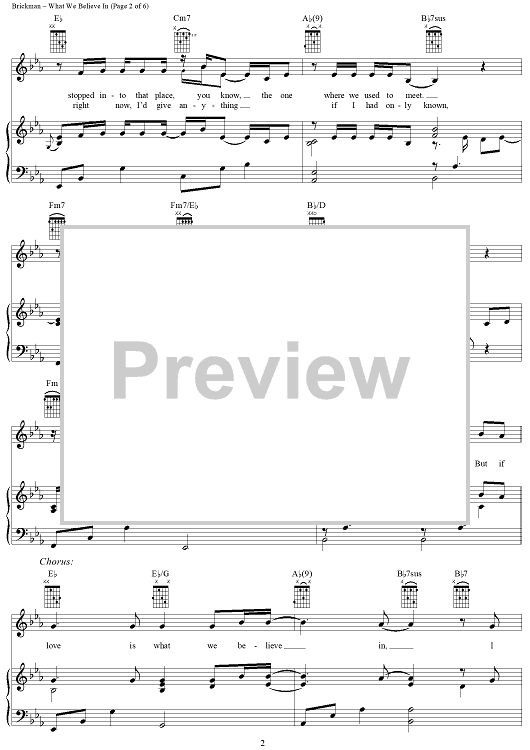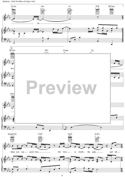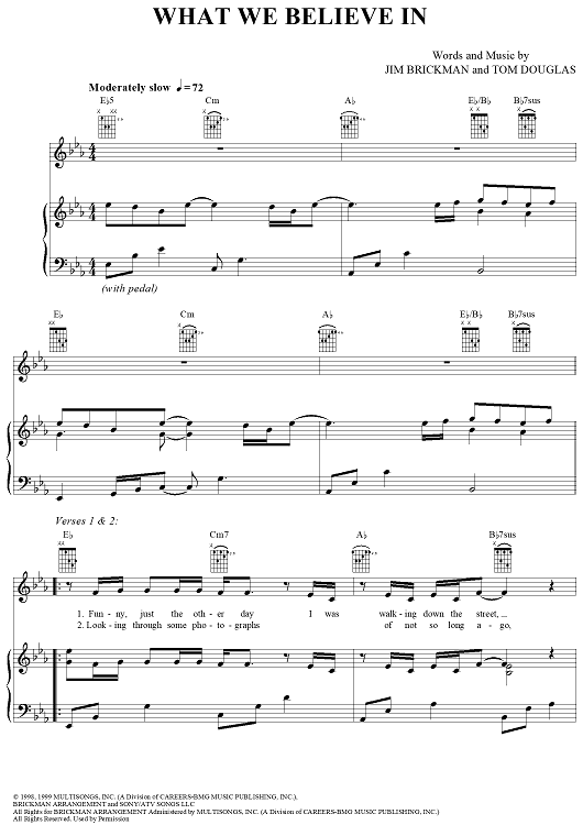 Digital Sheet Music for What We Believe In by Jim Brickman, Tom Douglas scored for Piano/Vocal/Chords; id:274873