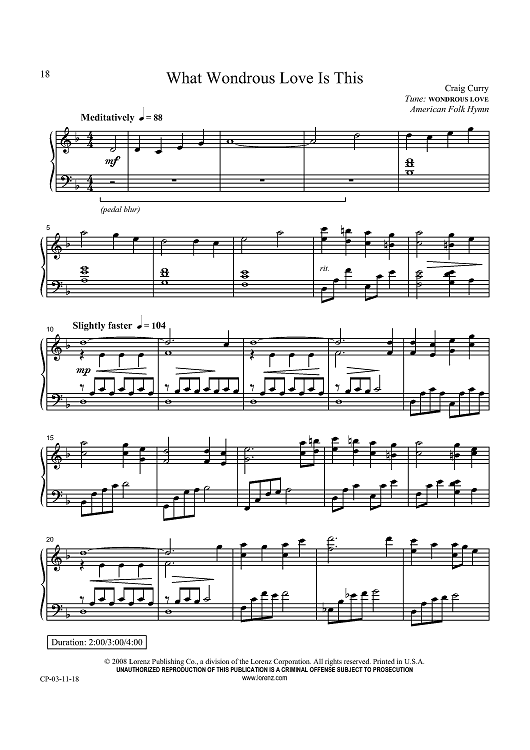 Digital Sheet Music for What Wondrous Love Is This by American Folk Hymn, Craig Curry scored for Piano Solo; id:434080