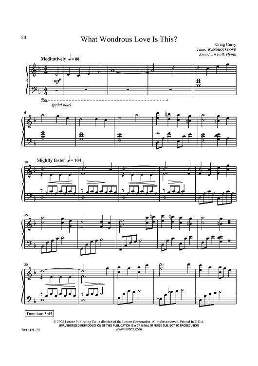 Digital Sheet Music for What Wondrous Love Is This? by American Folk Hymn, Craig Curry scored for Piano Solo; id:434251