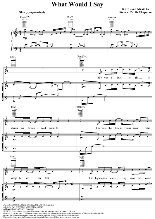 Digital Sheet Music for What Would I Say by Steven Curtis Chapman scored for Piano/Vocal/Chords; id:119380