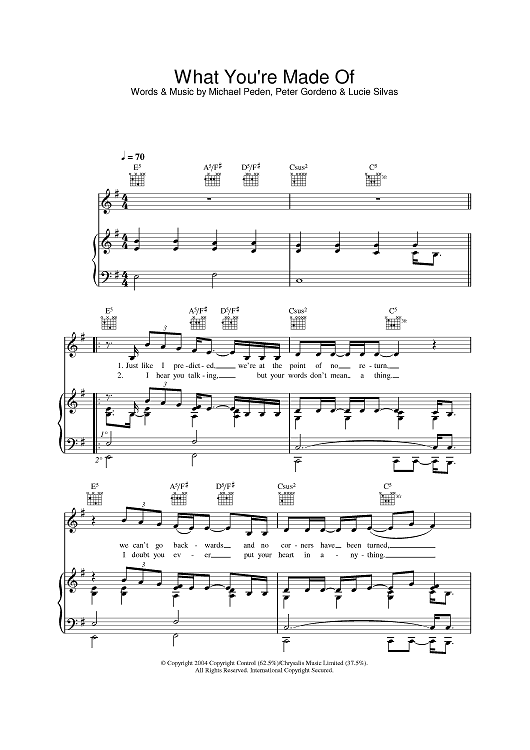 Digital Sheet Music for What You're Made Of by Peter Gordeno, Michael Peden, Lucie Silvas scored for Piano/Vocal/Chords; id:381677