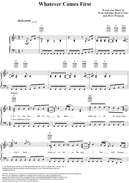 Digital Sheet Music for Whatever Comes First by Sons Of The Desert, Drew Womack, Walt Aldridge, Brad Crisler scored for Piano/Vocal/Chords; id:112264