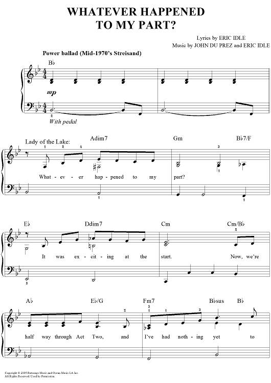 Digital Sheet Music for Whatever Happened to My Part? by Eric Idle, John Du Prez scored for Easy Piano/Vocal/Chords; id:390115