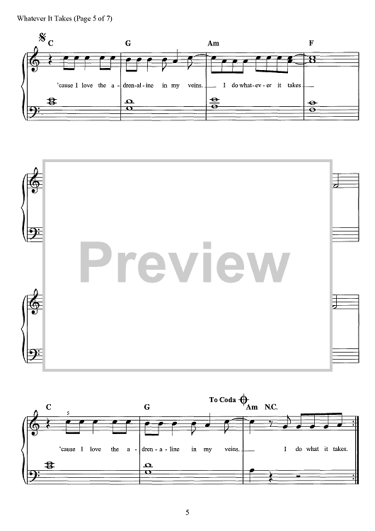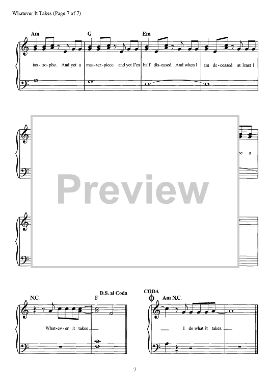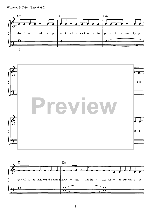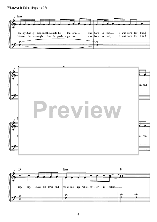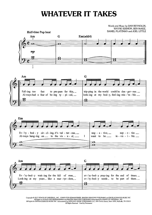 Digital Sheet Music for Whatever It Takes by Daniel Reynolds, Imagine Dragons, Joel Little, Ben McKee, Daniel Platzman, Wayne Sermon scored for Easy Piano/Vocal/Chords; id:466845