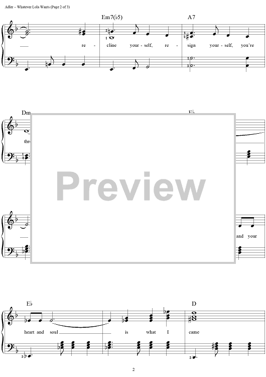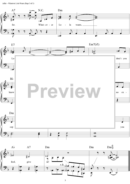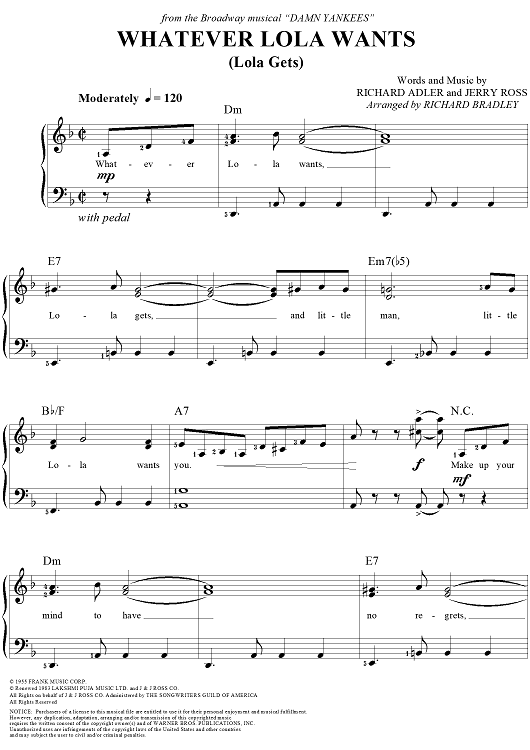Digital Sheet Music for Whatever Lola Wants (Lola Gets) by Richard Bradley, Jerry Ross, Richard Adler scored for Easy Piano/Vocal; id:277971