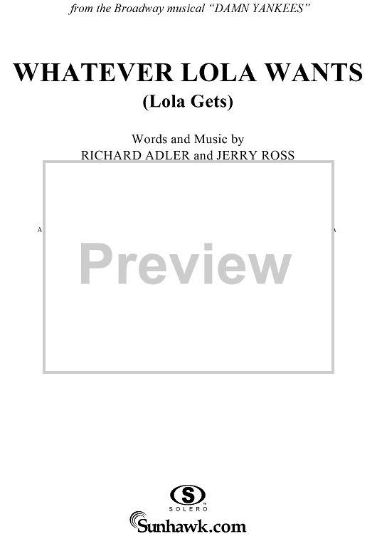 "Whatever Lola Wants (Lola Gets)" Sheet Music by Jerry Ross