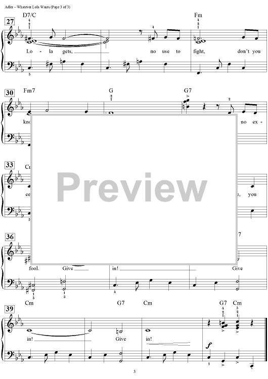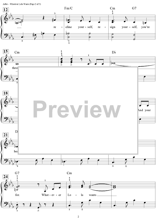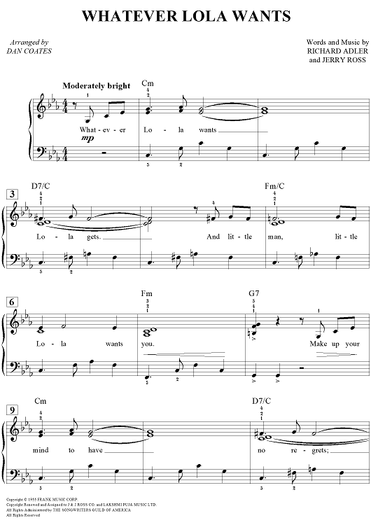 Digital Sheet Music for Whatever Lola Wants by Dan Coates, Jerry Ross, Richard Adler scored for Easy Piano/Vocal/Chords; id:451992