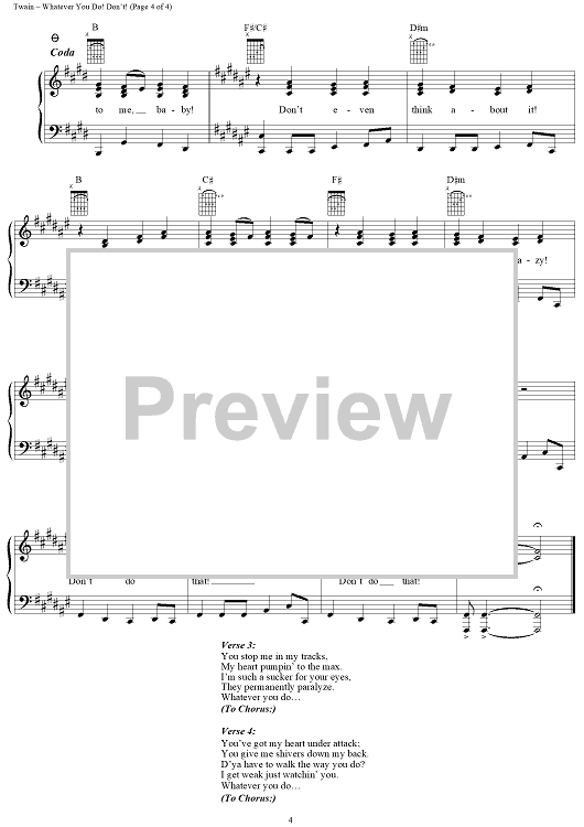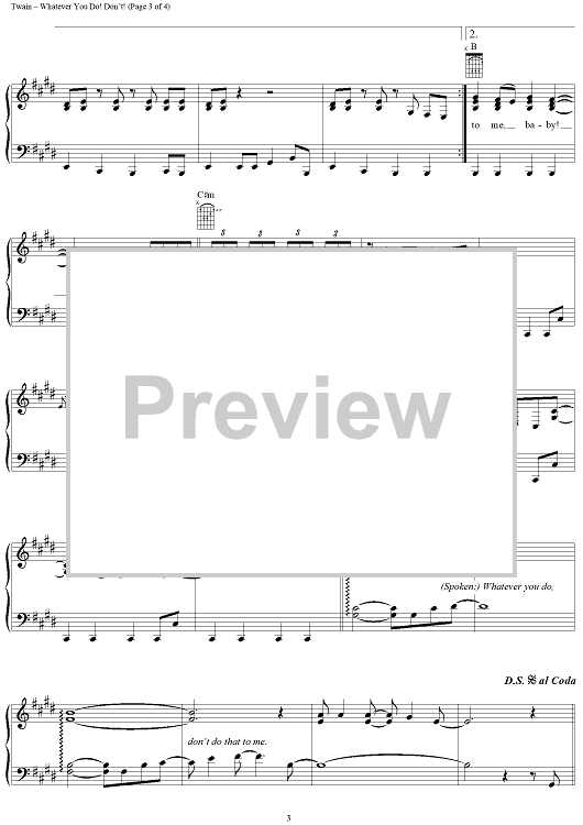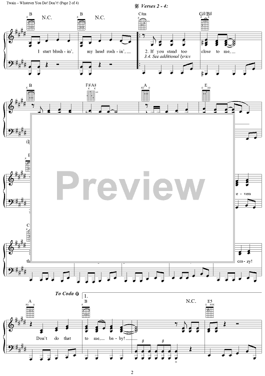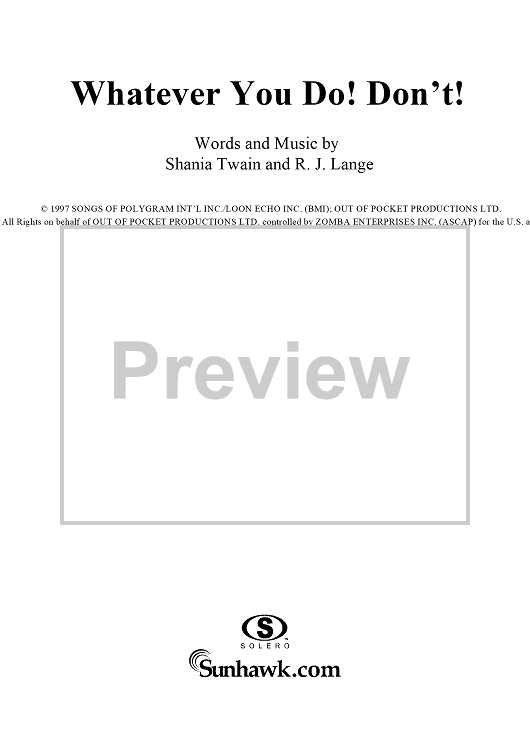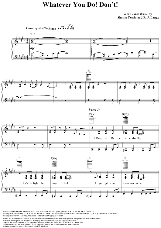 Digital Sheet Music for Whatever You Do! Don't! by Shania Twain, Robert Lange scored for Piano/Vocal/Chords; id:112030
