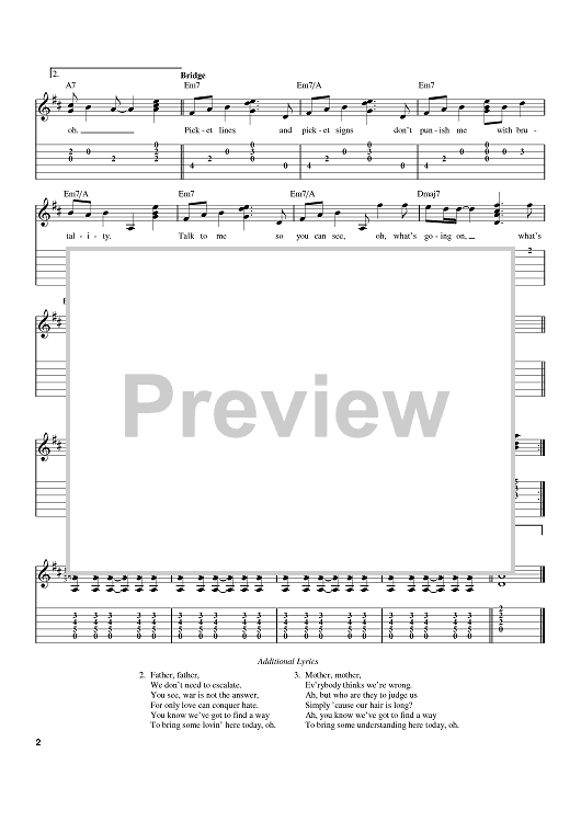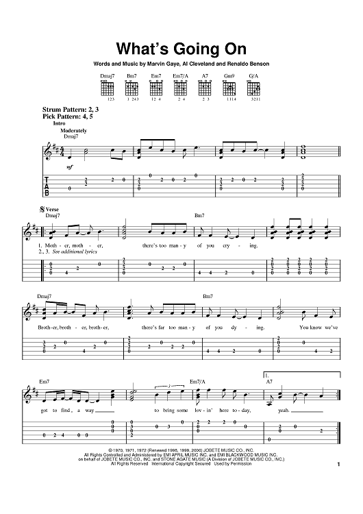 Digital Sheet Music for What's Going On by Marvin Gaye, Al Cleveland, Renaldo Benson, All Star Tribute scored for Easy Guitar; id:370221