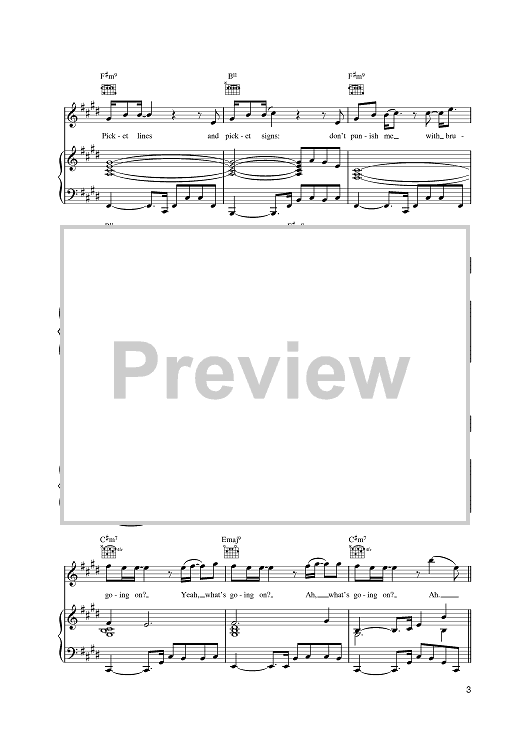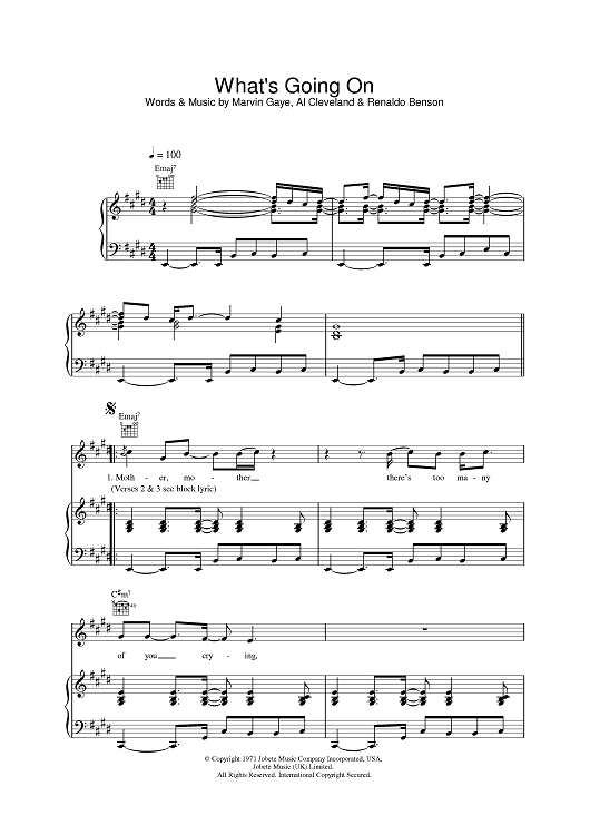 Digital Sheet Music for What's Going On by Marvin Gaye, Al Cleveland, Renaldo Benson scored for Piano/Vocal/Chords; id:385399