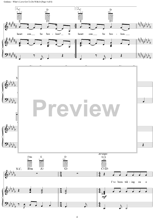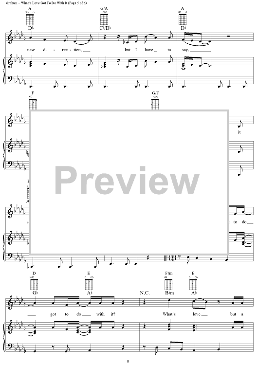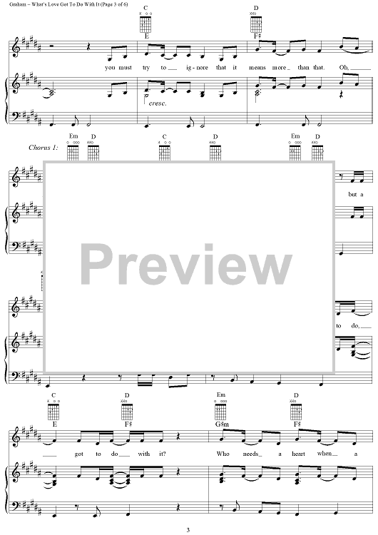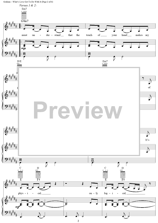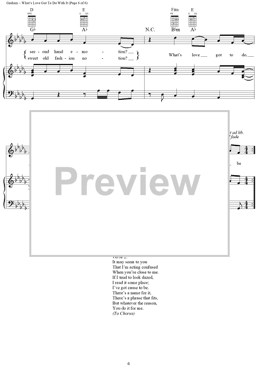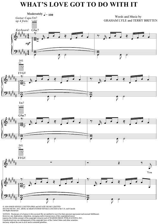 Digital Sheet Music for What's Love Got To Do With It by Tina Turner, Graham Lyle, Terry Britten scored for Piano/Vocal/Chords; id:119856