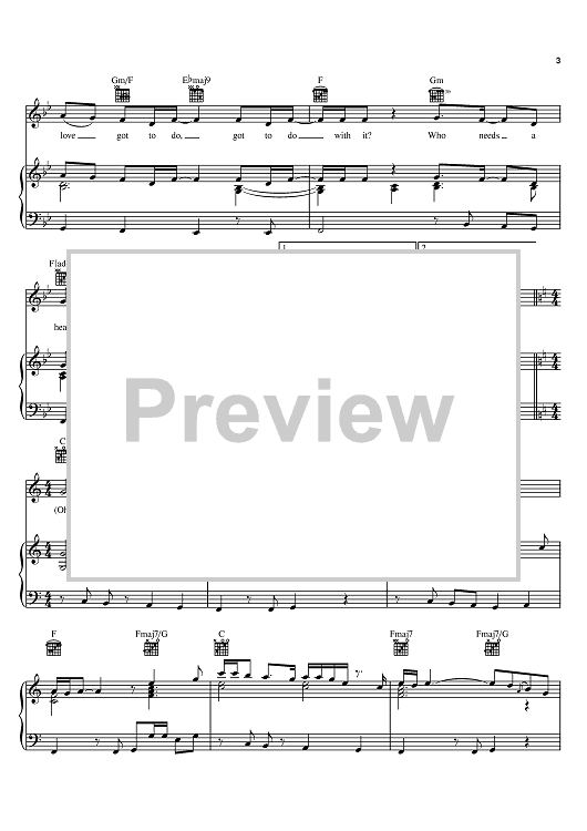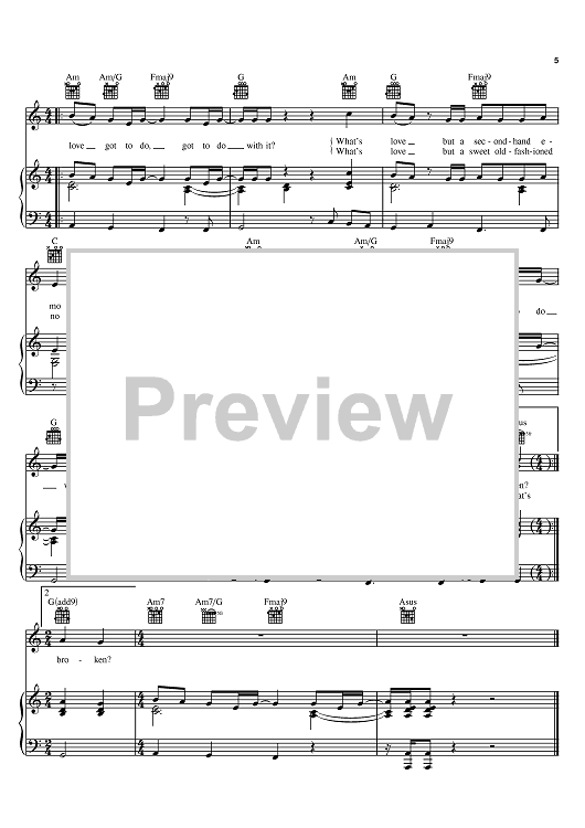 Digital Sheet Music for What's Love Got To Do With It by Tina Turner, Graham Lyle, Terry Britten scored for Piano/Vocal/Chords; id:386252