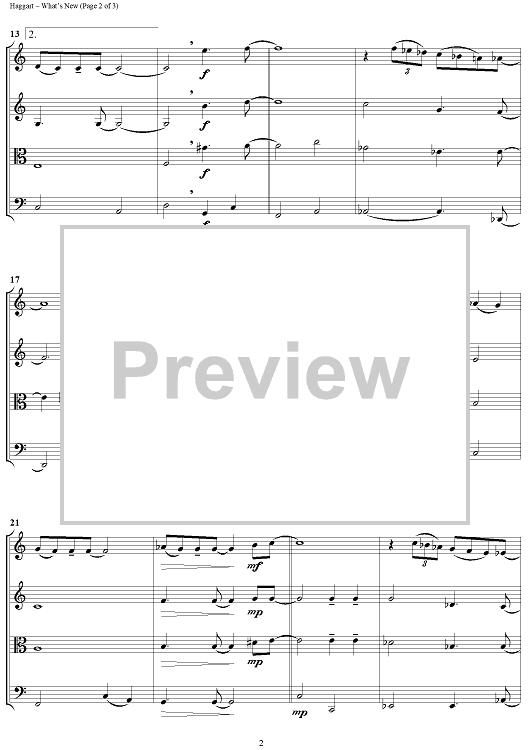 Digital Sheet Music for What's New - Score by Johnny Burke, Bob Haggart, Jeff Sultano scored for String Quartet; id:317370