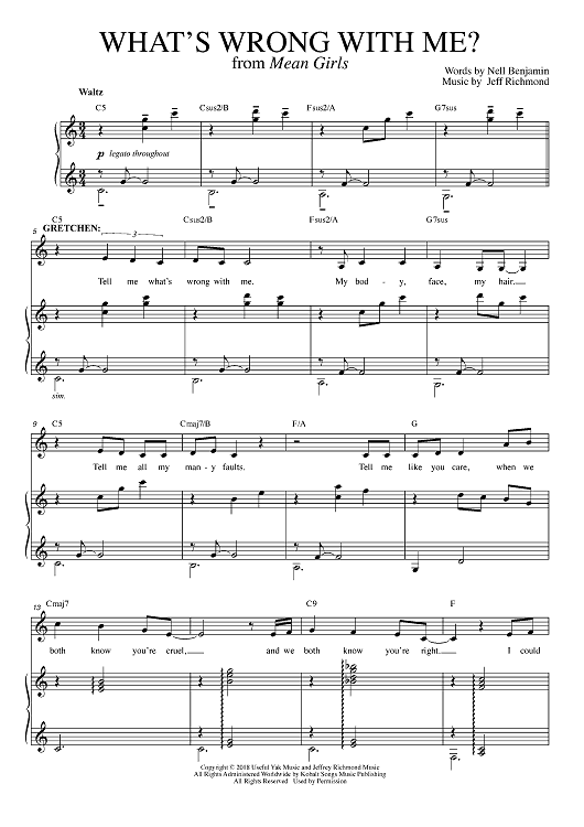 Digital Sheet Music for What's Wrong With Me? - from Mean Girls by Nell Benjamin, Jeff Richmond scored for Piano/Vocal/Chords; id:467780