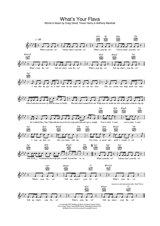 Digital Sheet Music for What's Your Flava by Craig David, Trevor Henry, Anthony Marshall scored for Lead Sheet; id:377888
