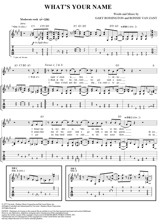 "What's Your Name" Sheet Music by Lynyrd Skynyrd
