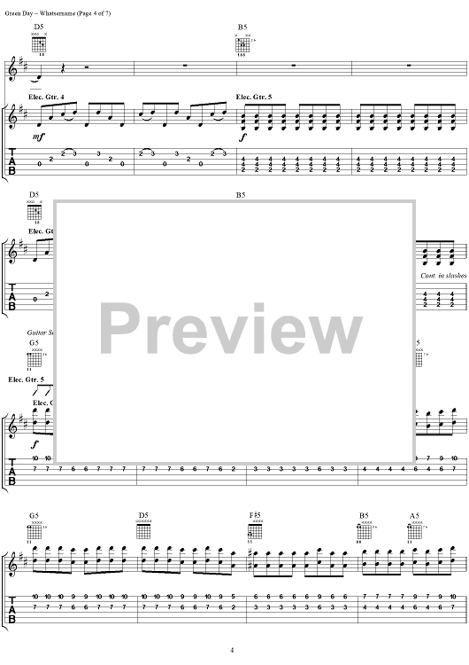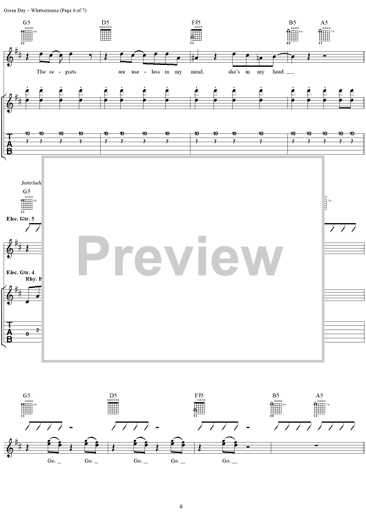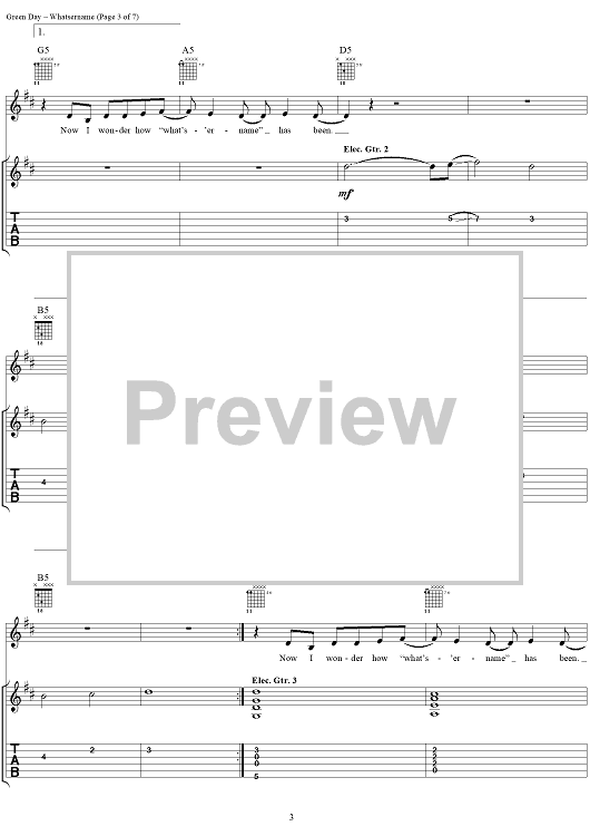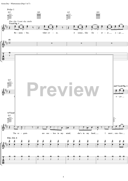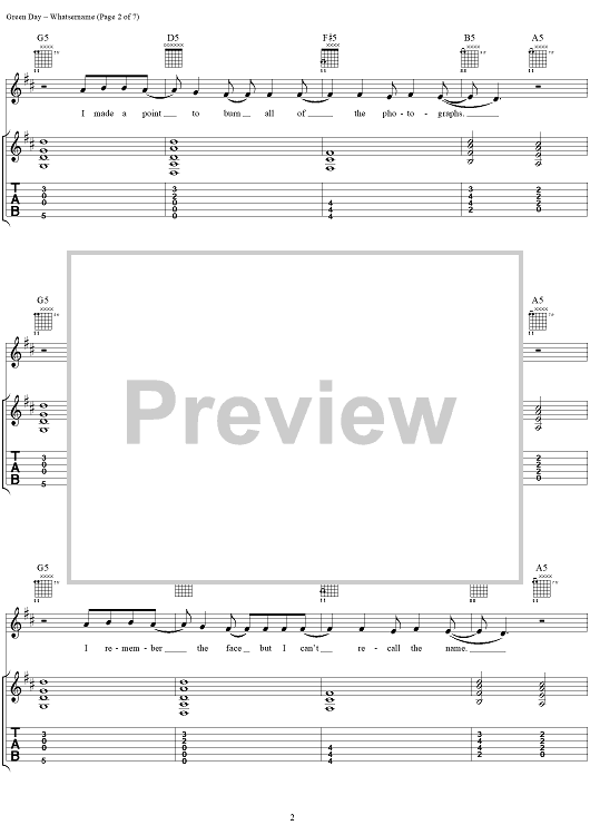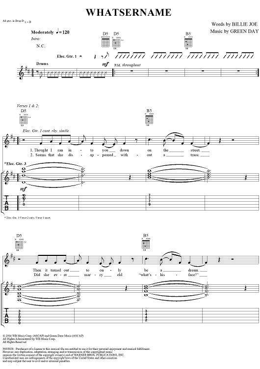 Digital Sheet Music for Whatsername by Green Day, Billie Joe scored for Guitar Tab/Vocal; id:308508