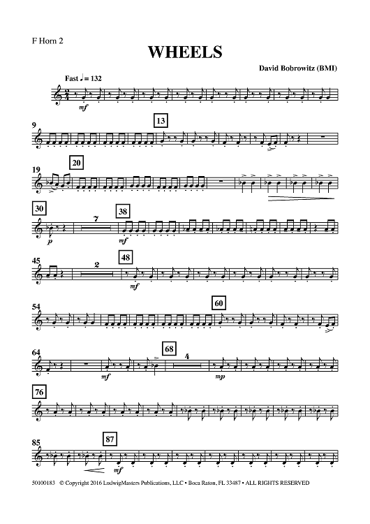 Digital Sheet Music for Wheels - Horn 2 in F by , David Bobrowitz scored for Concert Band; id:461685