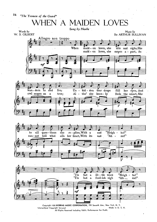 Digital Sheet Music for When A Maiden Loves by W. S. Gilbert, Arthur Sullivan, Harold Dixon scored for Piano/Vocal; id:423791