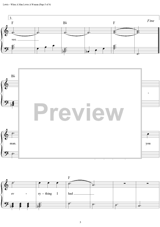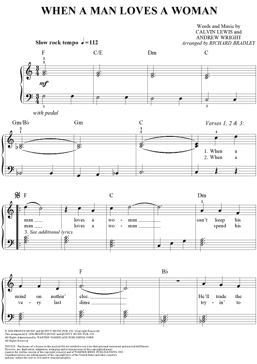 Digital Sheet Music for When A Man Loves A Woman by Richard Bradley, Calvin Lewis, Andrew Wright, Percy Sledge scored for Easy Piano/Vocal; id:283873