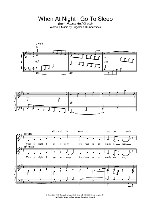 Digital Sheet Music for When At Night I Go To Sleep by Engelbert Humperdinck, Charlotte Church scored for Piano/Vocal/Chords; id:379930