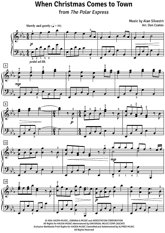 "When Christmas Comes to Town - from The Polar Express" Sheet Music by Alan Silvestri