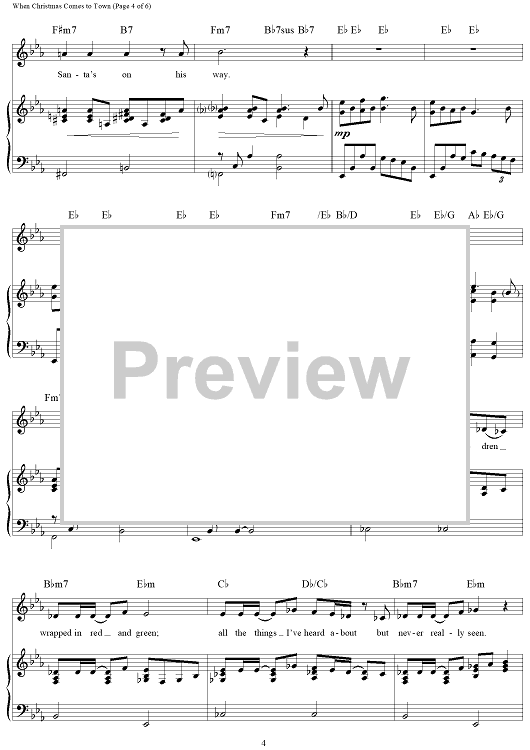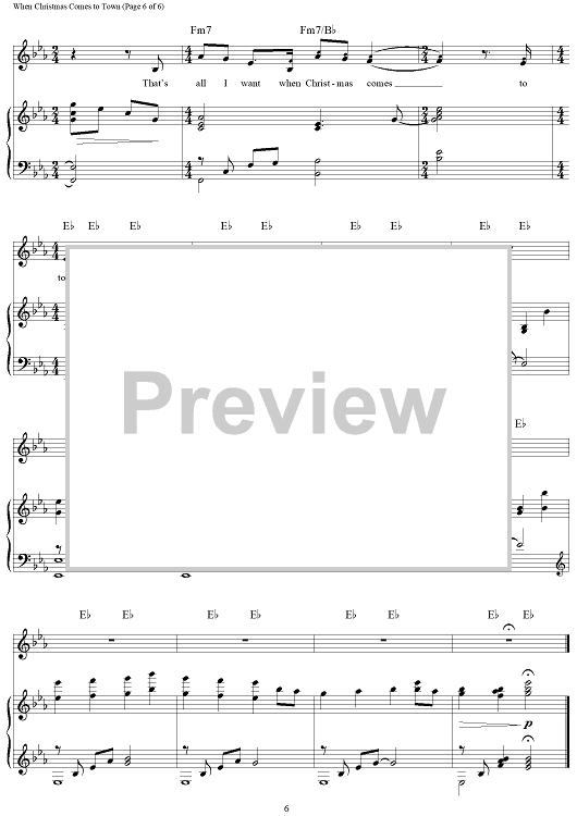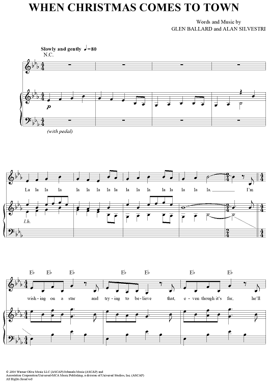 Digital Sheet Music for When Christmas Comes To Town by Glen Ballard, Alan Silvestri scored for Piano Solo; id:307894