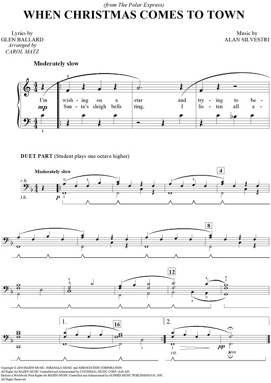 "When Christmas Comes To Town" Sheet Music by Alan Silvestri