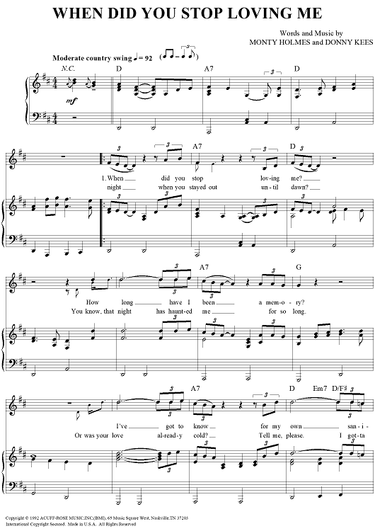 Digital Sheet Music for When Did You Stop Loving Me by George Strait, Monty Holmes, Donny Kees scored for Piano/Vocal/Chords; id:362861