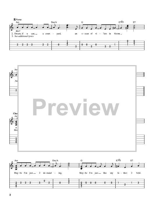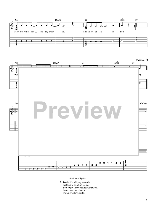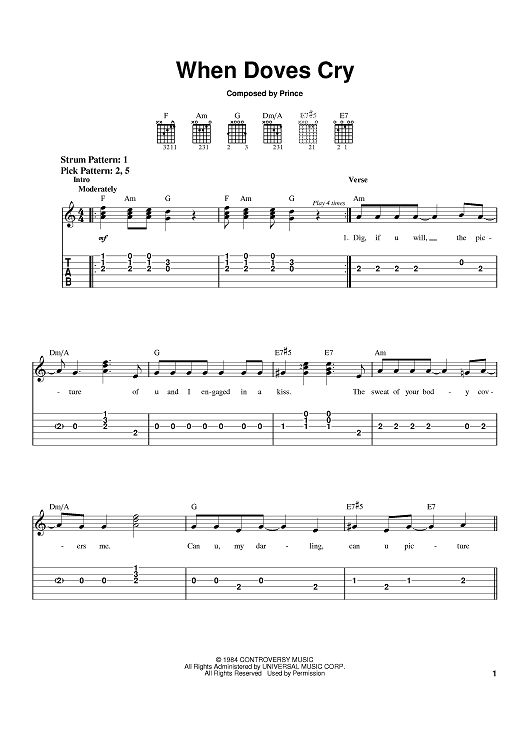 Digital Sheet Music for When Doves Cry by Prince scored for Easy Guitar Tab; id:386171