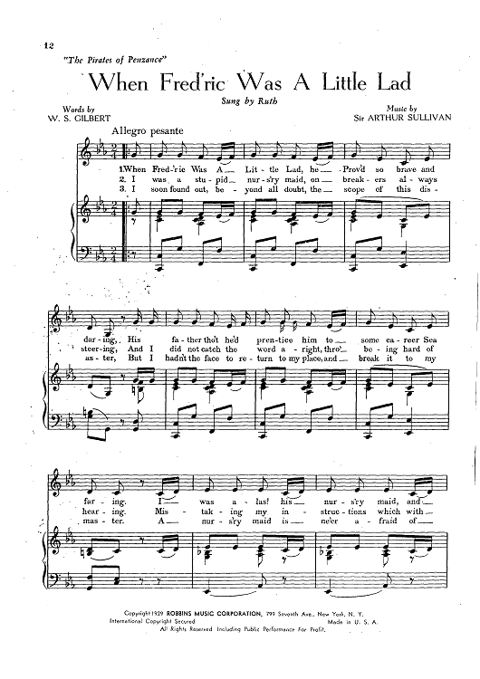 Digital Sheet Music for When Fred'ric Was A Little Lad by W. S. Gilbert, Arthur Sullivan, Harold Dixon scored for Piano/Vocal; id:423777