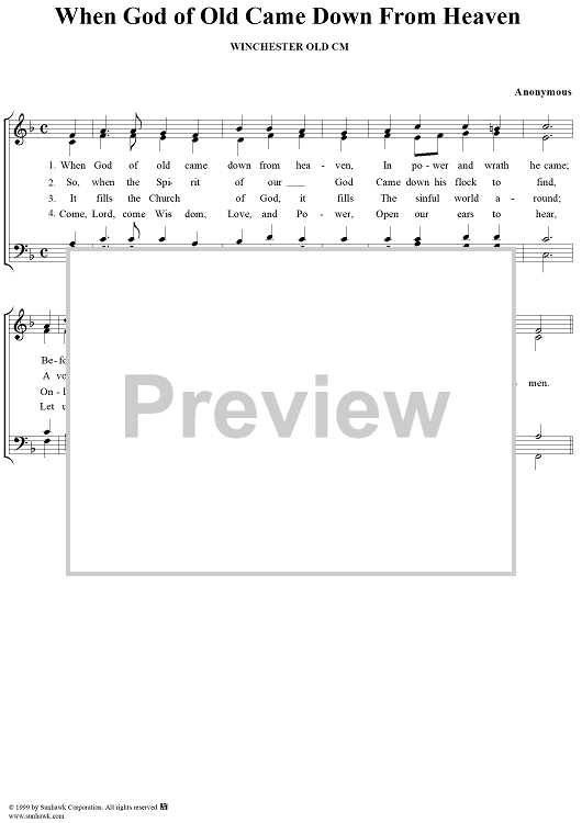 "When God of Old Came Down From Heaven" Sheet Music by Unknown Writer