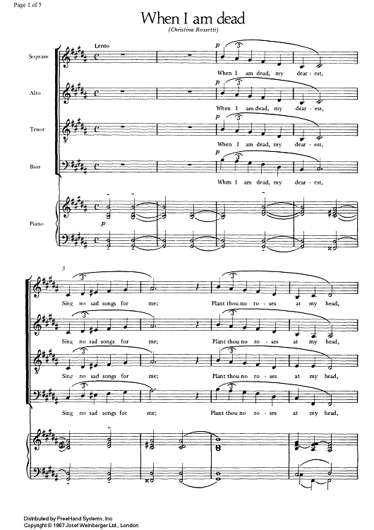 Digital Sheet Music for When I Am Dead by Antony Saunders, Malcolm Williamson scored for Choir/Piano; id:333589
