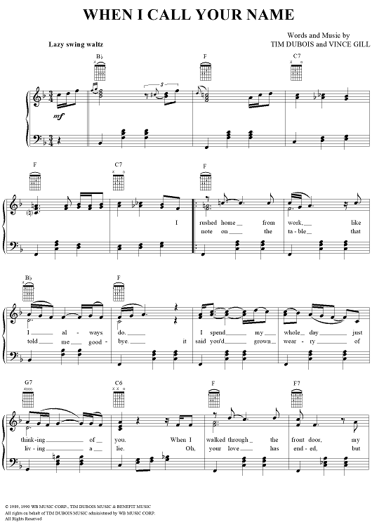 Digital Sheet Music for When I Call Your Name by Vince Gill, Tim Dubois scored for Piano/Vocal/Chords; id:119687