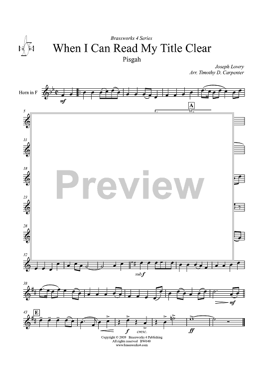 Digital Sheet Music for When I Can Read My Title Clear - Horn in F by Timothy Carpenter, Joseph Lowry scored for Brass Quintet; id:411183