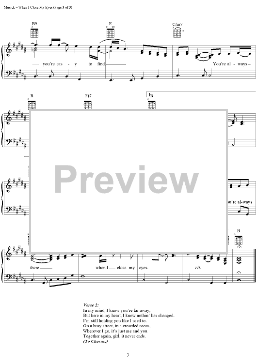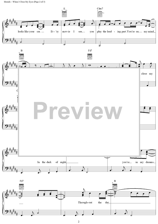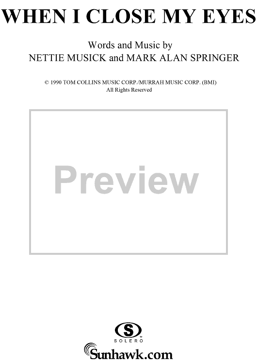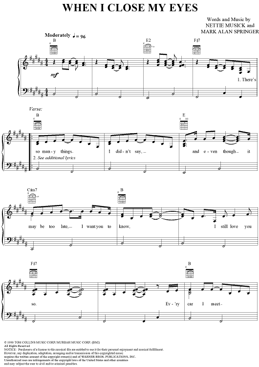 Digital Sheet Music for When I Close My Eyes by Kenny Chesney, Mark Alan Springer, Nettie Musick scored for Piano/Vocal/Chords; id:112693