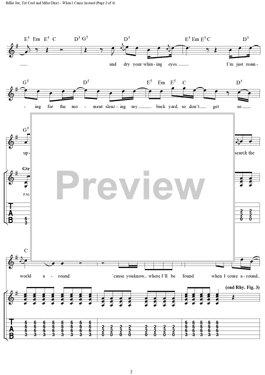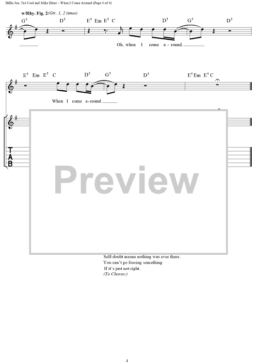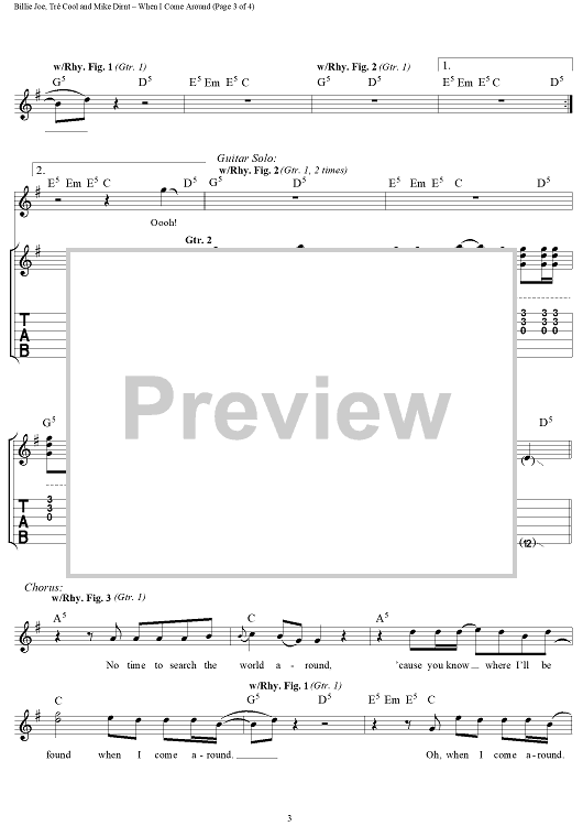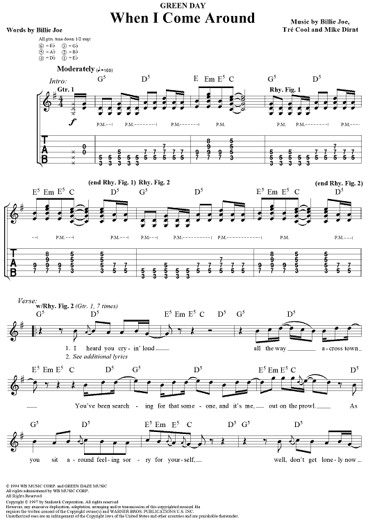 Digital Sheet Music for When I Come Around by Billie Joe Armstrong, Tré Cool, Mike Dirnt, Green Day scored for Guitar Tab/Vocal; id:109026