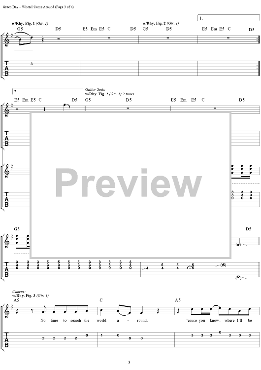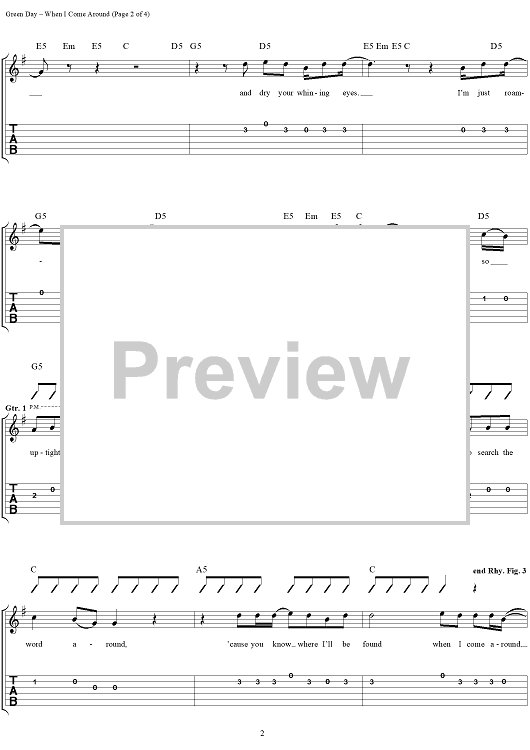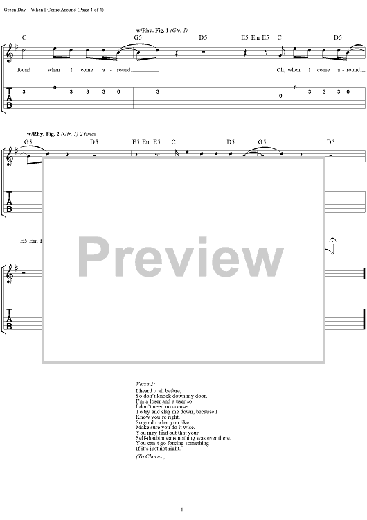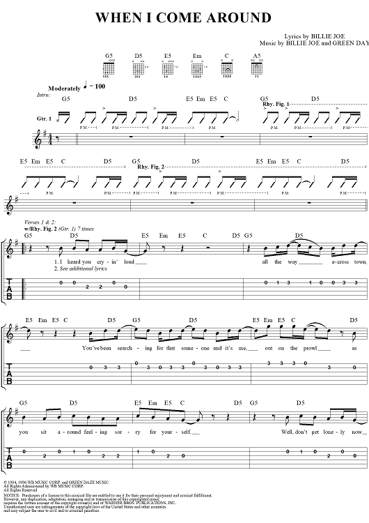 Digital Sheet Music for When I Come Around by Green Day, Billie Joe scored for Easy Guitar/Vocal; id:267476
