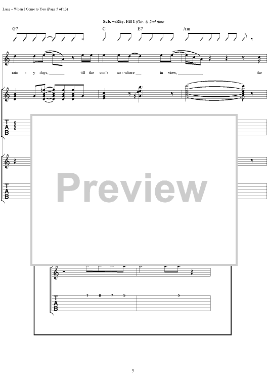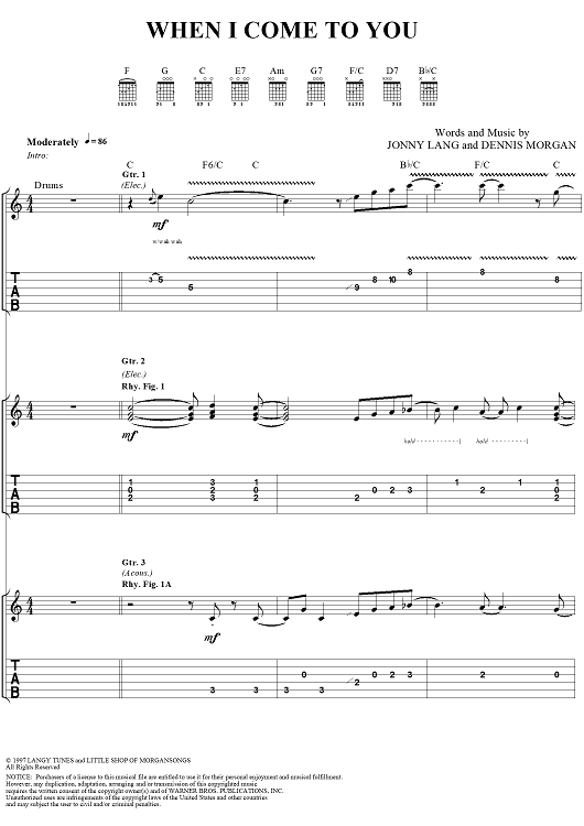 Digital Sheet Music for When I Come to You by Dennis Morgan, Jonny Lang scored for Guitar Tab/Vocal; id:250030