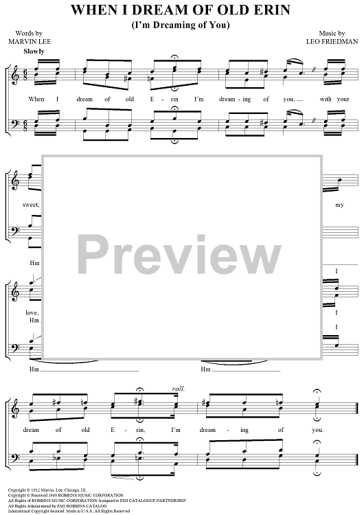 "When I Dream of Old Erin (I'm Dreaming of You)" Sheet Music by Leo Friedman