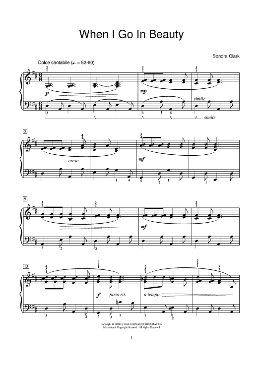 Digital Sheet Music for When I Go In Beauty by Sondra Clark scored for Piano; id:379149