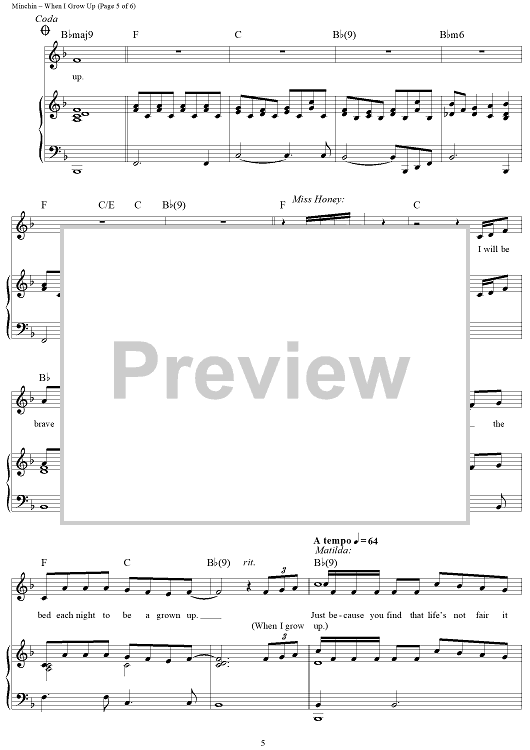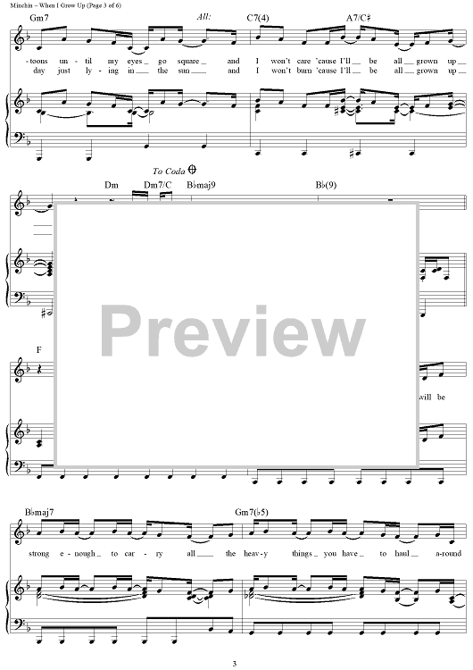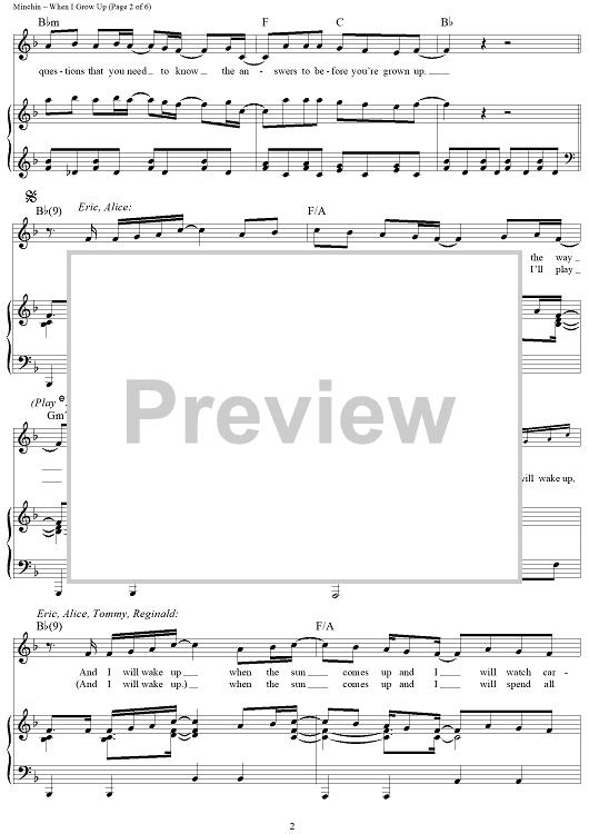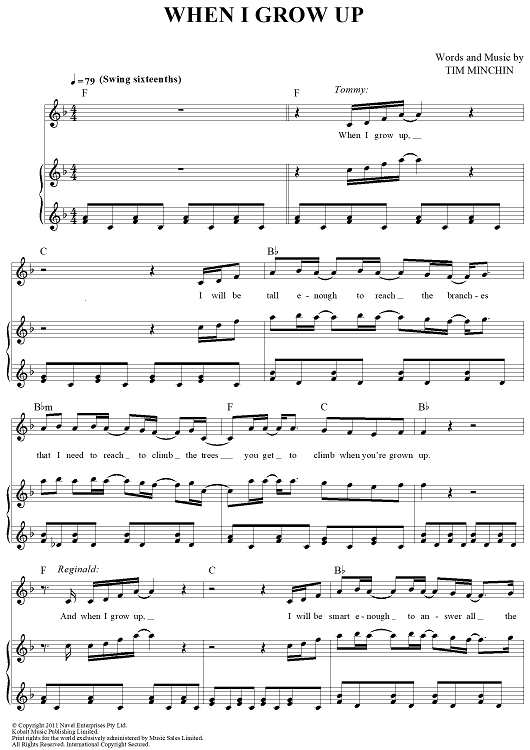 Digital Sheet Music for When I Grow Up by Tim Minchin scored for Piano/Vocal/Chords; id:439655