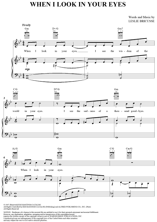 Digital Sheet Music for When I Look in Your Eyes by Leslie Bricusse scored for Piano/Vocal/Chords; id:362823