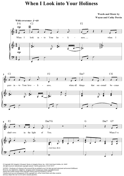 Digital Sheet Music for When I Look Into Your Holiness by Wayne Perrin, Cathy Perrin scored for Piano/Vocal/Chords; id:307735