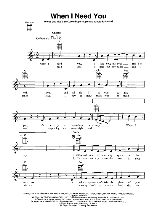 Digital Sheet Music for When I Need You by Carole Bayer Sager, Albert Hammond scored for Ukulele/Vocal; id:452277